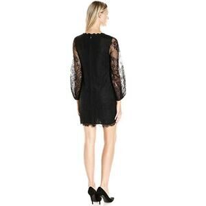 Trina Turk Lace Overlay Mini Dress Cut Out Neckline Sheer Balloon Sleeve Black 4