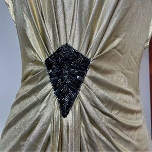 Trina Turk Liquid Gold Carrington Metallic Sequin Beaded V-Neck Dress 6 NWT