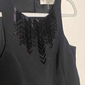 Excellent condition and like new! What a gorgeous holiday dress. Amazing material, and beautiful detail with beaded neckline for that elevated touch!