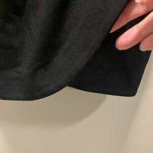 So many details to make this more than just a simple little black dress with wrap style front. It can accommodate larger chest size than in the measurements. It is waist and wrap style hem makes this an elegant little black dress with the deep V-neck in front and back and pleating at the chest & waist! so many ways to wear this great