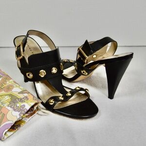 #TrinaTurk#DesignerSandals#BlackHeels#StatementShoes#GrommetSandals#LeatherHeels#EveningShoes#TrendyHeels#oldAccent#DressySandals#WomensShoes#HeeledSandals#LuxuryStyle#StylishFootwear#ChicLook