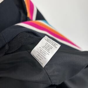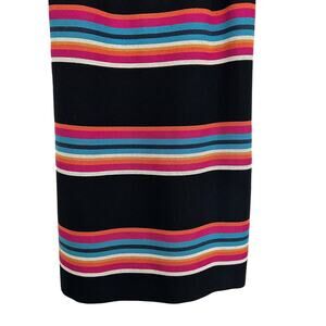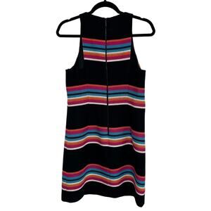 • Features: Sleeveless, zip back, black with multicolor stripe, shift style