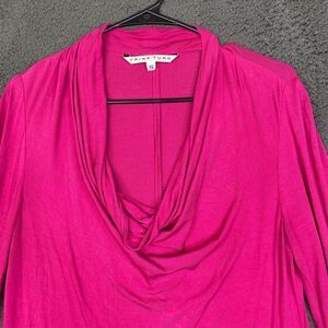 Trina Turk Long Sleeve Top Size Small Viscose Stretch Hot Pink Stretch