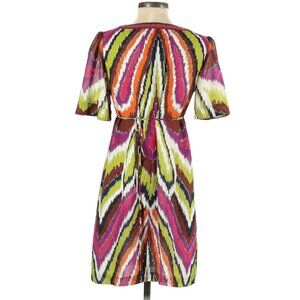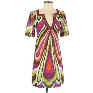 Trina Turk Los Angeles Silk Dress Split Neck Multicolor Ikat Sz 2
