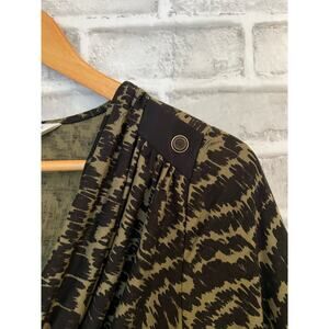Trina Turk Los Angeles Women's Mandy Cowl Neck Green Black Bodycon Dress Size 4. Excellent condition. Body is 100% tencel, contrast is 100% silk. Cute button detail on shoulders.