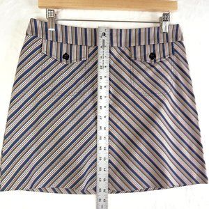 Trina Turk Los Angeles Women's Mini Skirt 6 Blue Tan Pink Stripe Button Pockets