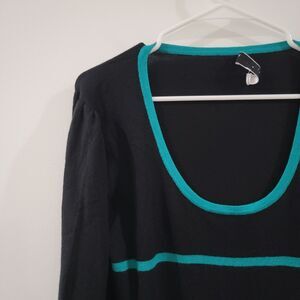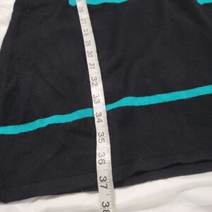 The Trina Turk Los Angeles Women's Sweater Dress in size medium is a classic and stylish piece made from a luxurious blend of cashmere, silk, and wool. This long-sleeve dress features a scoop neckline, pullover closure, and a knee-length hem. The solid black color and button accents add to the elegant look of this dress, perfect for various occasions such as parties, casual outings, and business events during the winter, fall, and spring seasons. The designer brand and high-quality materials ensure a timeless and sophisticated addition to any woman's wardrobe.