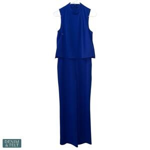 Trina Turk Majorelle Blue Marisa 2 Jumpsuit Mock Neck Split Back Chic NEW~NWT!!