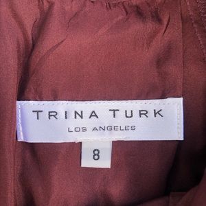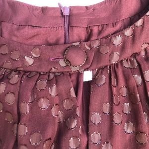 Trina Turk Maroon Metallic Polka Dot Spotted Flutter Silk Women Mini Dress Sz 8