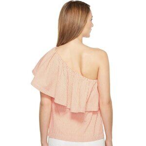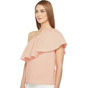 Trina Turk 'Mayreau' striped top featuring one-shoulder styling on soft, stretch-cotton shirting fabrication.