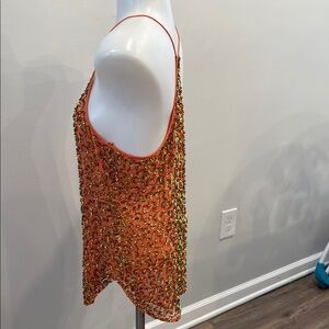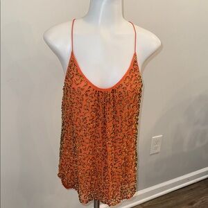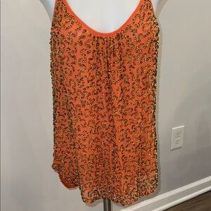 Trina Turk Medium Silk Beaded Orange Camisole Tank Top Intricate Detailing