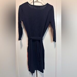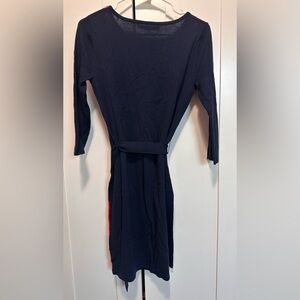 Trina Turk Merino Wool Geometric Patterned Navy Blue Belted Dress Size S