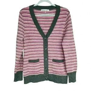 Trina Turk Merino Wool Multicolor Striped Button Front Cardigan Size Large
