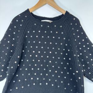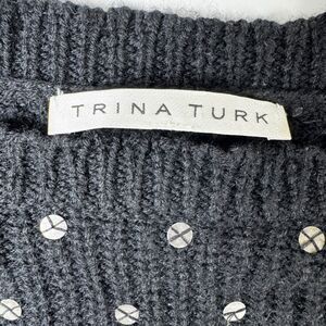 Trina Turk Merino Wool Sweater Womens Medium Black Embellished Knit Pullover Top