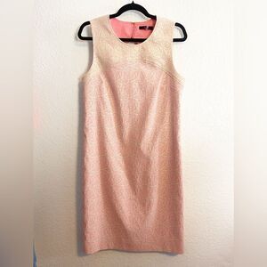 Trina Turk Metallic Sleeveless Round Neck Shift Dress Pink Gold 8