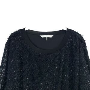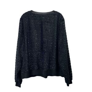 Trina Turk Metallic Shag fuzzy Sweatshirt top Size XXL black shiny sparkle