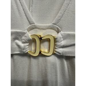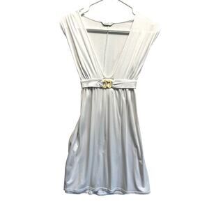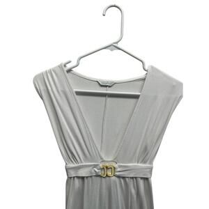 Trina Turk Midi Dress White Deep V Belt Micromodal Spandex S Resort Beach