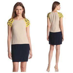Trina Turk Midtown Stud Shoulder Colorblock Dress. Colors: navy, tan, yellow.