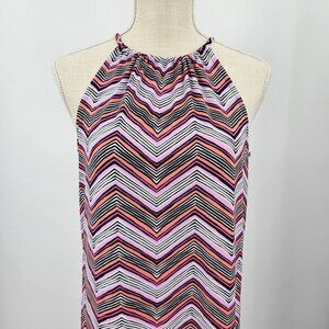 Trina Turk Milian 2 Chevron Maxi Dress Purple Halter Tie Back Keyhole Sleeveless Lightweight Breathable Stretch Women's