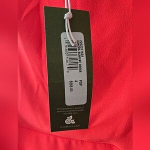 This vibrant mini sundress by Trina Turk is perfect for a cocktail night out, featuring a wrap-style design in striking orange and red hues. The dress boasts a flattering v-neckline with spaghetti straps and unique dolman short sleeves, offering a chic and comfortable fit. Its lightweight fabric and above-the-knee length make it an ideal choice for a stylish evening.