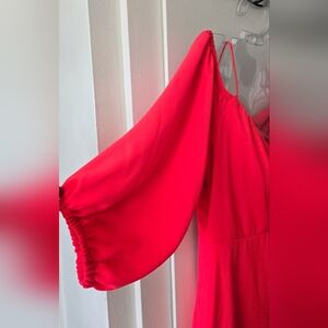 Trina Turk Mixology Cold-Shoulder Red Mini Sundress with Dolman Sleeves
