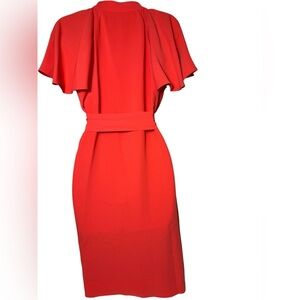 Trina Turk Mock Neck Button Up A-line Dress in Corral Red SZ 4 with Belt