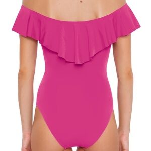 Trina Turk Monaco Off the Shoulder Ruffle One-Piece Swimsuit – Size 10 – Fuchsia