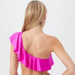 Trina Turk "Monaco" bandeau bikini top featuring one-shoulder styling and a ruffled overlay.