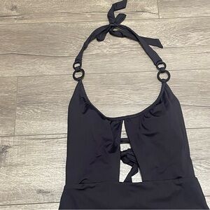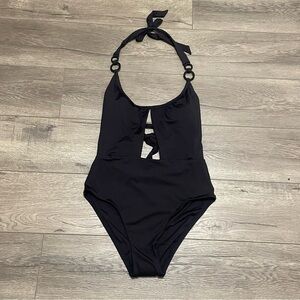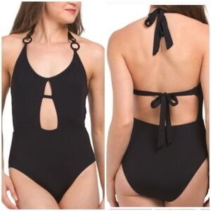 Trina Turk Monaco Scoop Neck Cutout Halter One Piece Swimsuit Black Sz 8 NWT