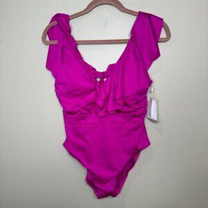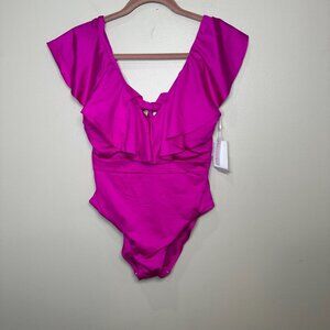 Trina Turk Monaco Swimsuit Ruffle V-Neck One Piece Sz 8 Pink Resort NWT