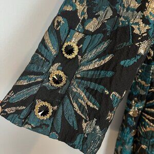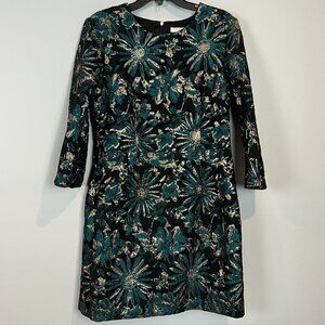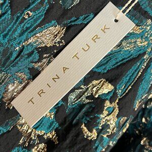 Trina Turk Moonrise Metallic Jacquard Dress Size 14 NWT Black Teal Gold Cocktail