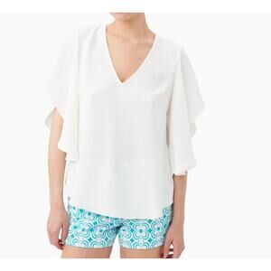 Trina Turk Moore Crepe Top Blouse | Womens XL, White Wash (Ivory) New $178