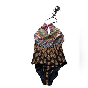 Trina Turk Moroccan Medallion Goddess High Neck One Piece Swimsuit Size 8