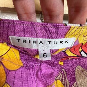 Trina Turk Moss 2 Pants Size 6 Solaire Lily Floral Purple Yellow Preppy Tropical