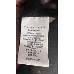 Elevate your wardrobe with this stunning Trina Turk Mouvedre Geometric Colorful Kimono Sleeve Boho Blouse. The blouse features a beautiful geometric pattern with a mix of vibrant colors that will make any outfit stand out. The boat neck and 3/4 kimono sleeves add a touch of bohemian elegance, perfect for formal occasions or a night out.