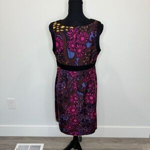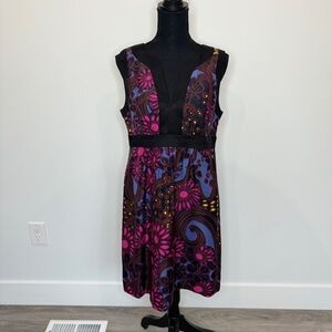 Trina Turk Multi Color V-Neck Floral 100% Silk Midi Dress (Sz 10)