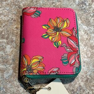 Trina Turk Multi Colored Bright Fun Preppy Floral Gold Zipper Wallet New