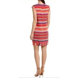 Trina Turk Multi Zinnia Zig Zag Printed Sheath Dress Colorful Capsleeve Retro M