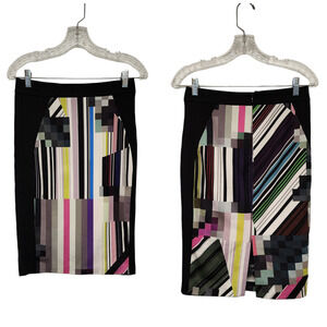 Trina Turk Multicolor Black Striped Printed Pencil Skirt Size 2
