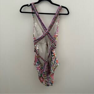 Trina Turk Multicolor Geometric Deep V-Neck Cross Back Sleeveless Swimsuit 10