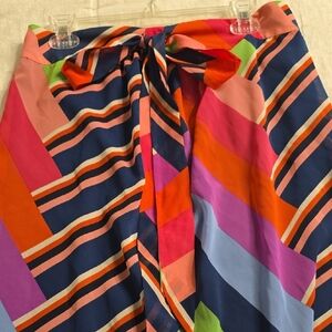 Vibrant midi skirt with bold stripes. Features a mix of colors for a striking look. Perfect for any occasion.