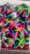 Bright top with tropical leaf design. Features pink, green, blue, and orange on black.