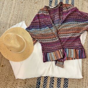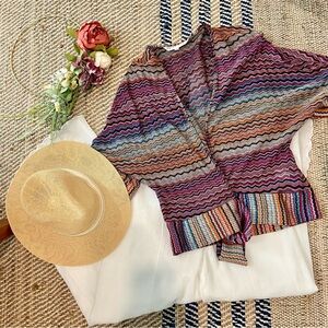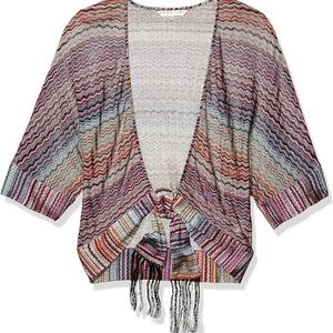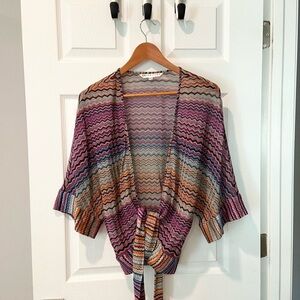 Stylish zigzag pattern. Open front with tie closure. Perfect for layering.