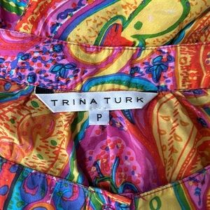 Trina Turk Multicolored Half Sleeve Button Up Blouse 100% Silk Sz P G