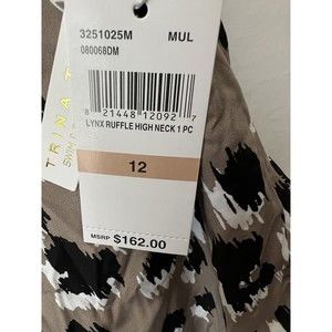 Trina Turk NWT Lynx Ruffle High Neck Reversible 1 Piece Bathing Suit size 12