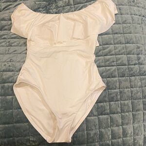 Trina Turk NWT size 4 Monaco white Off The Shoulder One Piece Ruffle Swimsuit