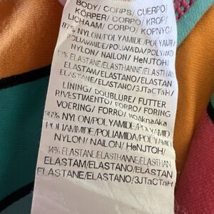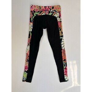 The Trina Turk Nandini Recreation Leggings are vibrant floral leggings in a colorful paisley pattern, ideal for travel, activewear, or casual wear. They come in size XS with a waist size of 26 inches and have a mid-rise fit. Made from a blend of nylon and spandex, these ankle-length leggings feature a comfortable stretch, moisture-wicking properties, and are wrinkle-resistant. The design includes a convenient pocket and is part of the Trina Turk recreation line, suitable for various activities such as yoga, running, hiking, and weightlifting.