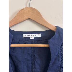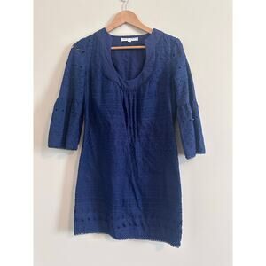 Trina Turk Navy Blue Brillant Bell Sleeve Eyelet Mini Dress Size 2