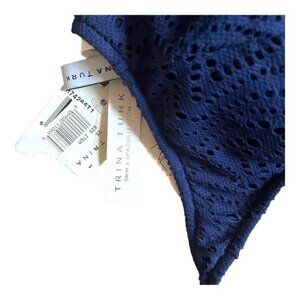 Trina Turk Navy Blue Crochet Halter Bikini Top Gold Accent Small NWT MSRP $78