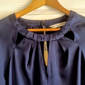 Trina Turk Navy Blue Silk Cutout Collar Top